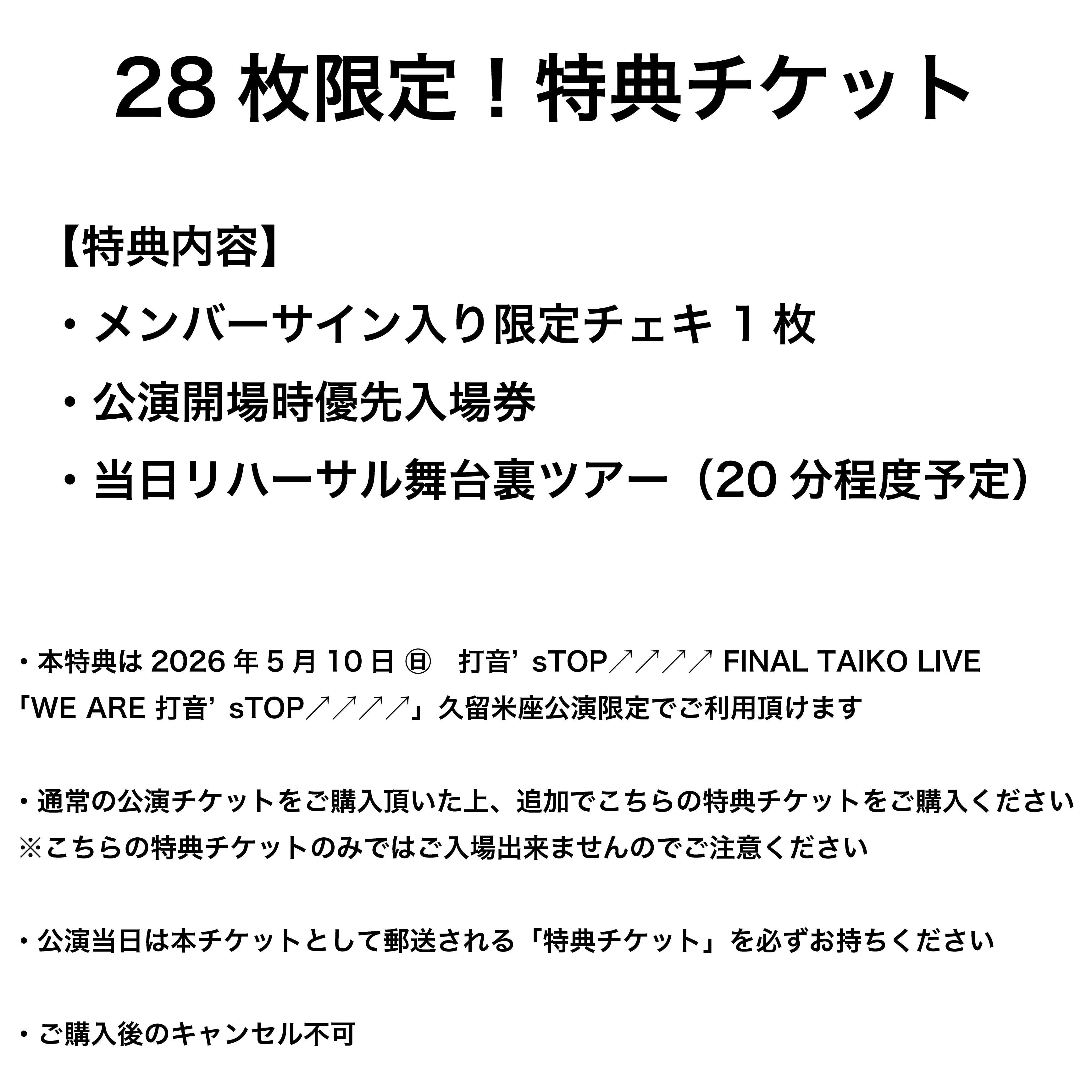 ・本特典は2026年5月10日㊐ 打音’sTOP FINAL TAIKO LIVE